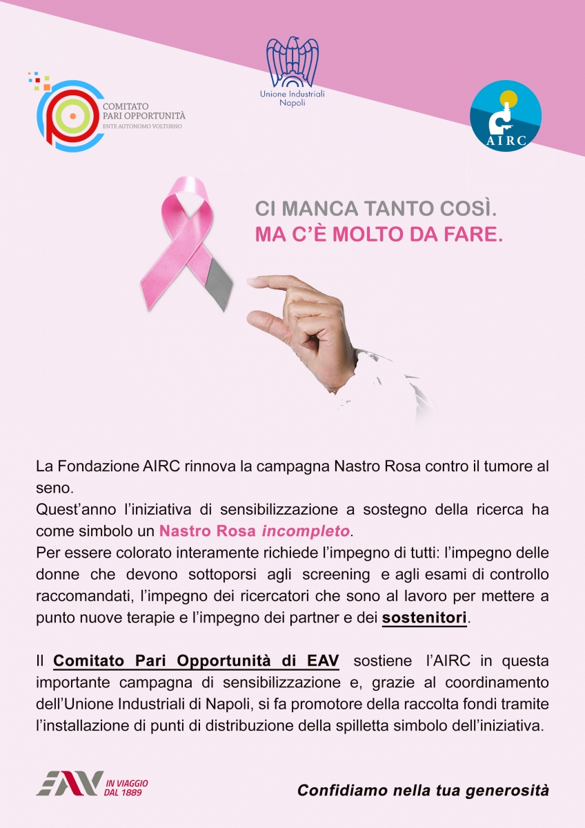 Il Comitato Pari Opportunità dell’EAV ha aderito alla campagna Nastro Rosa 2022, attraverso il coordinamento generale dell’Unione Industriali di Napoli.