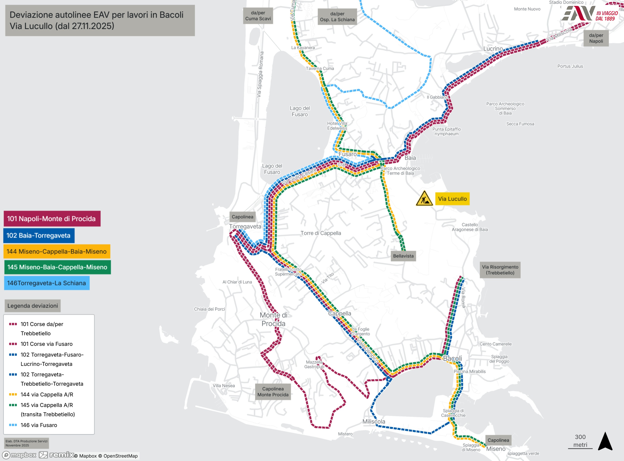 Linee 101-102-135-144-145-146: Deviazione temporanea per interdizione Via Lucullo di Bacoli (dal 27 Novembre 2025)